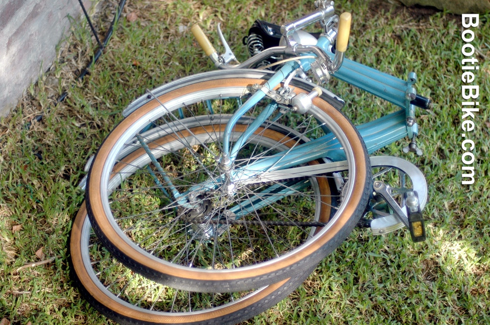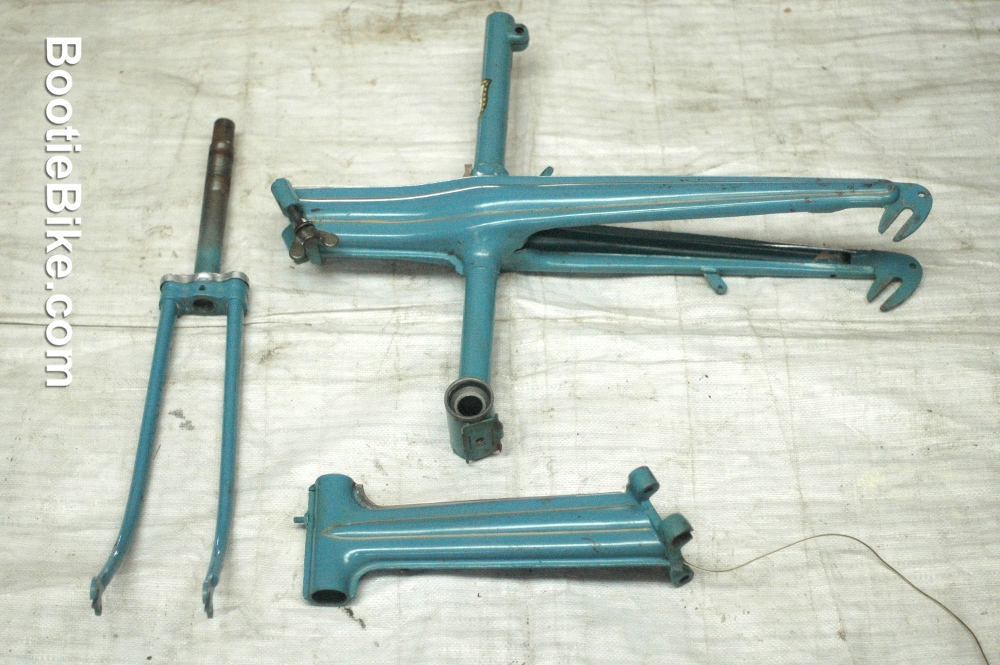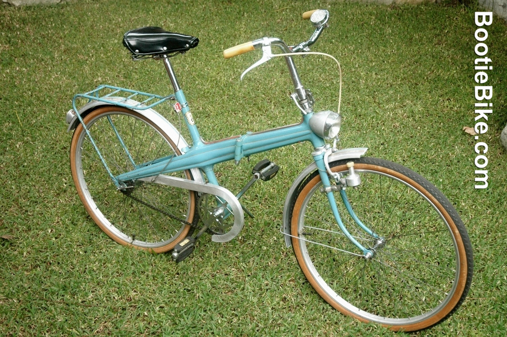 Neckermann initially offered the folder in a chic metallic blue or, for an additional DM9.50, metallic red or green. The pump clipped to the frame and the tools lived in a saddle bag. The following three or four years brought various running changes, such as the tool kit and pump moving inside the frame, and the adoption of a 'three arrows’ crankset (in this case rust-enhanced).