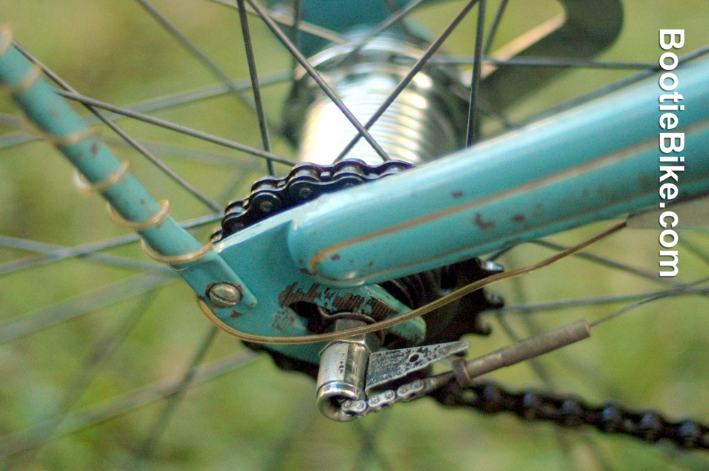 While the gearchange is awkward at the best of times, it's not so much of a problem when speeding up, as you can take your time when changing up, and the trigger ‘flicks’ to a higher gear. However, care is required when changing down, and much precious momentum can be lost while fumbling around the rear of the, er, bike. The three speed option was replaced by the trigger-less Duomatic two-speed in the (northern) autumn catalogue of 1965-66. I’m surprised it took so long.
