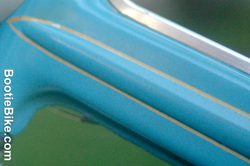 At some stage an unusual kind of plating – resembling alloy (maybe it is?) – supplanted the chrome on the rims. A shame, as this dull, nondescript finish cannot compare to chrome, and I think it lowers the tone of the whole bike. Non-metallic 'sea blue' became the only colour available, but gold pinstriping remained a valued part of the package.