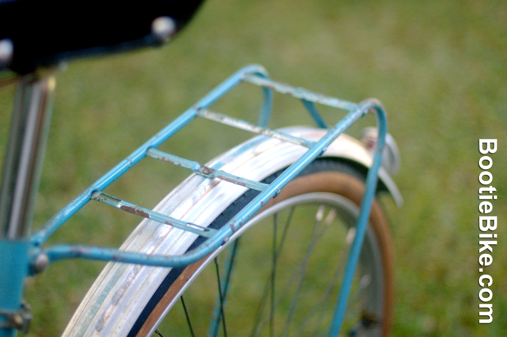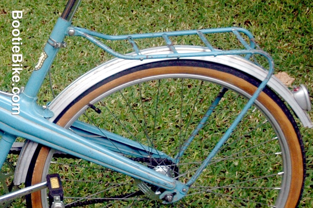 The Neckermann has a rear rack that is similar to that of the original Hermann Klaue bikes – straightforward yet nicely detailed, even attractive. No complaints, but it can't bear comparison with the bauhaus-inspired version on the Hercules 2000, with its uprights gracefully arcing rearwards from the dropouts. Only the Germans could make a bike luggage rack sexy. The rack on the Neckermann was originally equipped with a built-in rubber strap to hold one's 'luggage'. I hope to replace this when I can find some suitable rubber.