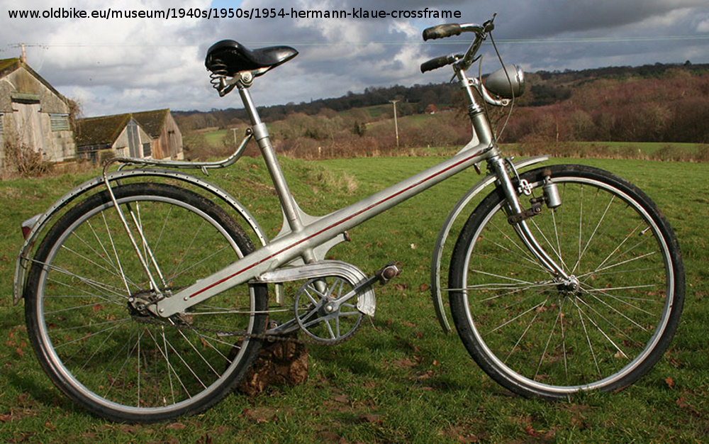The Neckermann folder is of course notable for its distinctive 'cross' frame, which is made of steel pressings instead of the cast alloy of the Hermann Klaue referred to above. Both were far from being the first to use the cross frame design, but maybe the Neckermann could claim to be the first to fold.