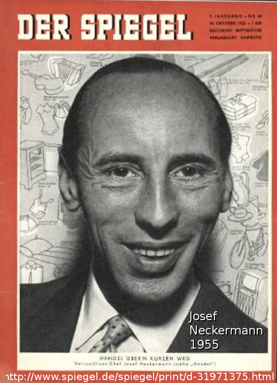 That catalogue was for the Neckermann mail order house, which was established in 1938 (in questionable circumstances) by one Josef Neckermann, who went on to become an equestrian champion at four Olympic Games. His company, promoted as 'Das Grosse Versandehaus' ('the big mail order house'), traded until 2012.