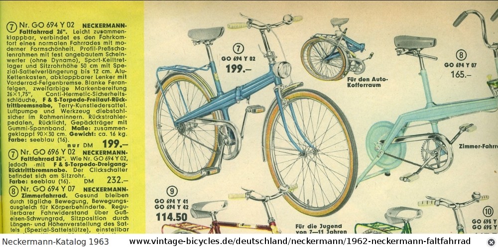 It's time to visit Germany, home of the splendid Neckermann folder. It may seem unlikely, but this most glamorous of bicycles was sold alongside pots, pans and other household goods, as well as conventional bicycles,